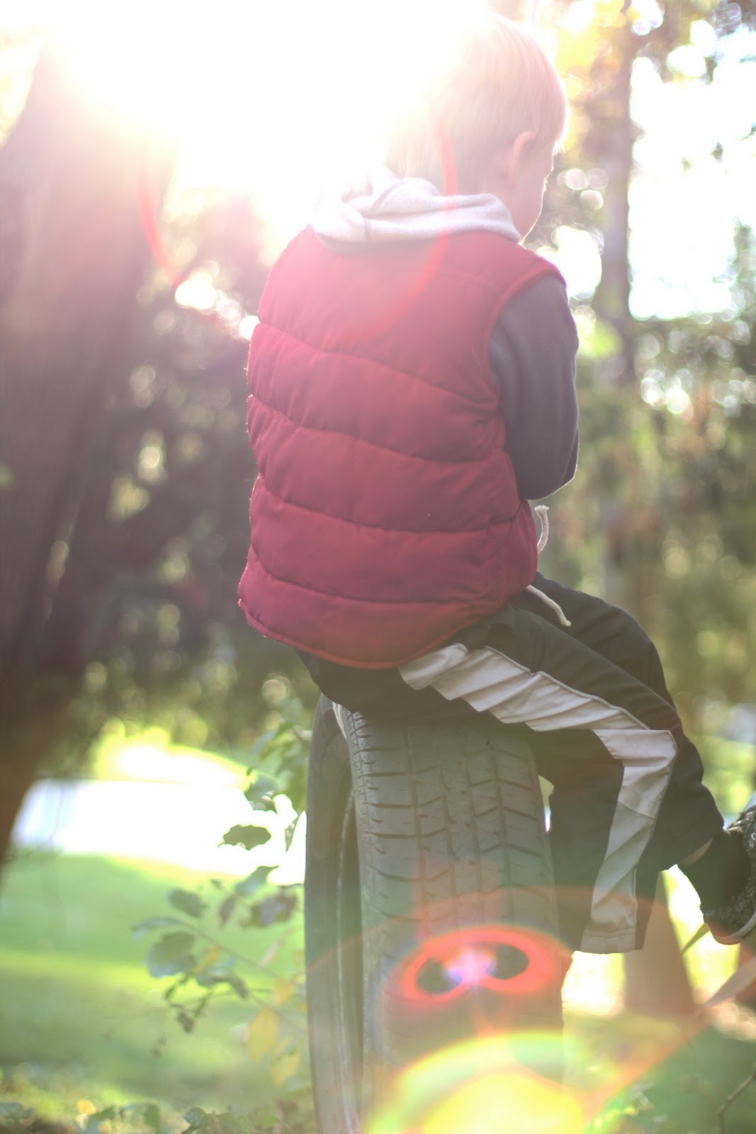 Here are a few pictures that were taken yesterday. A"new" tire swing kept the boys busy while we cleaned up the messy leaves and eventually watched the slowly setting sun over a bit of soccer.