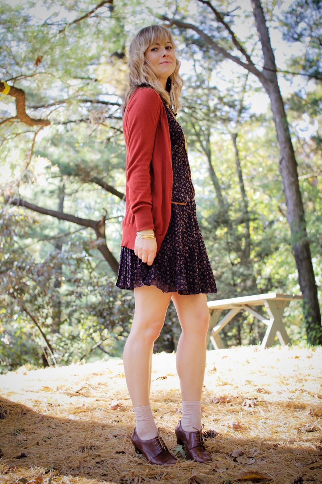 {dress - H&M, necklace - Somewhere in Time Antiques (GB), sexy cardi - Forever 21, socks - Gap, shoes - T J Maxx}